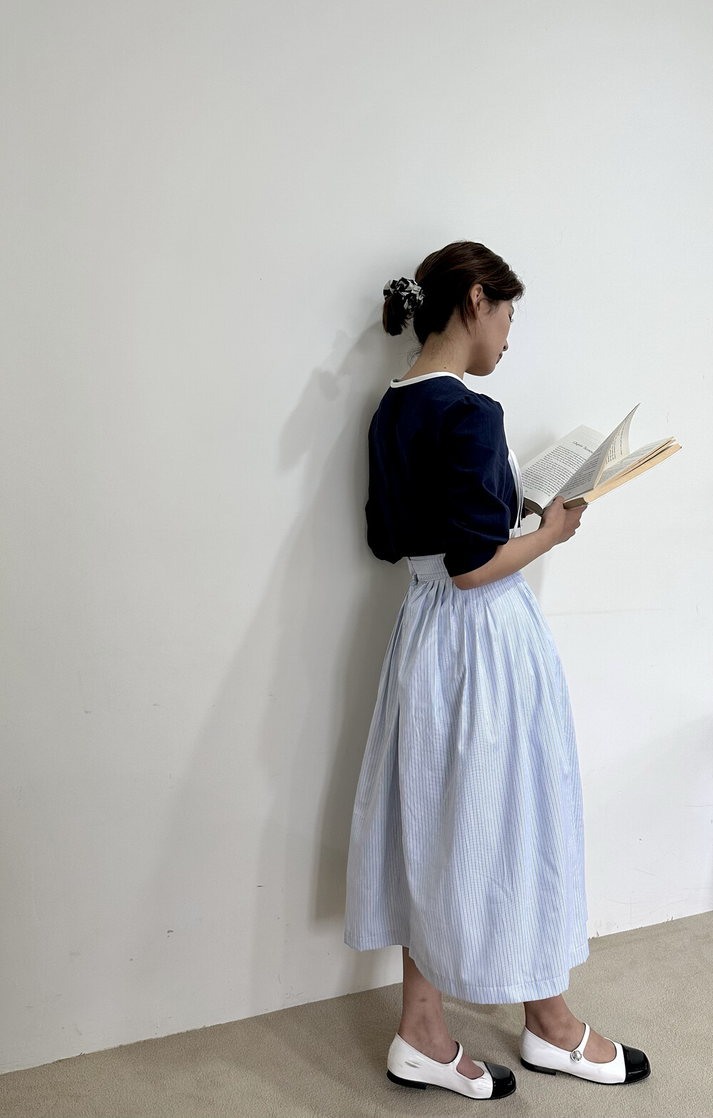 - 치마의 여밈 방식만 확인해주세요! 사진속 치마는 드오 허리치마_blue 입니다. -