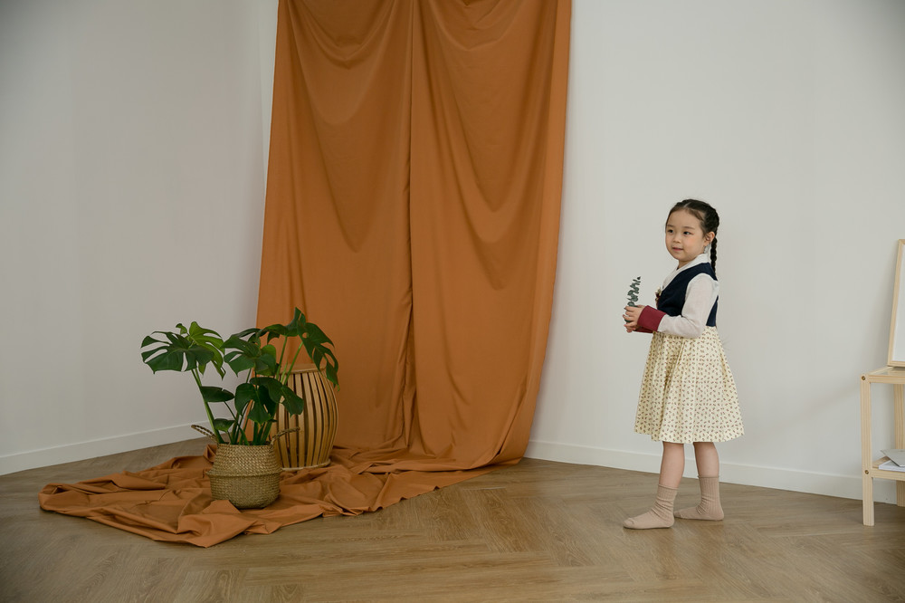 사랑스러운 튤립패턴 원단의 민소매 원피스와 함께