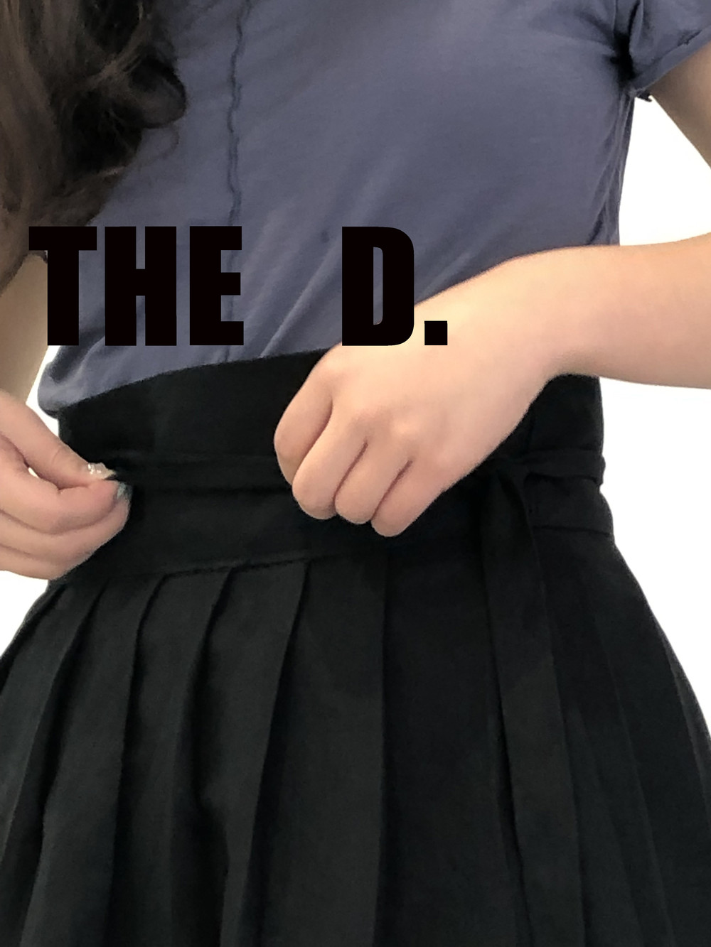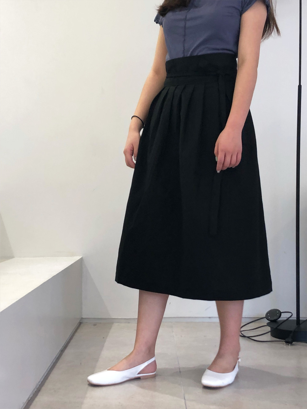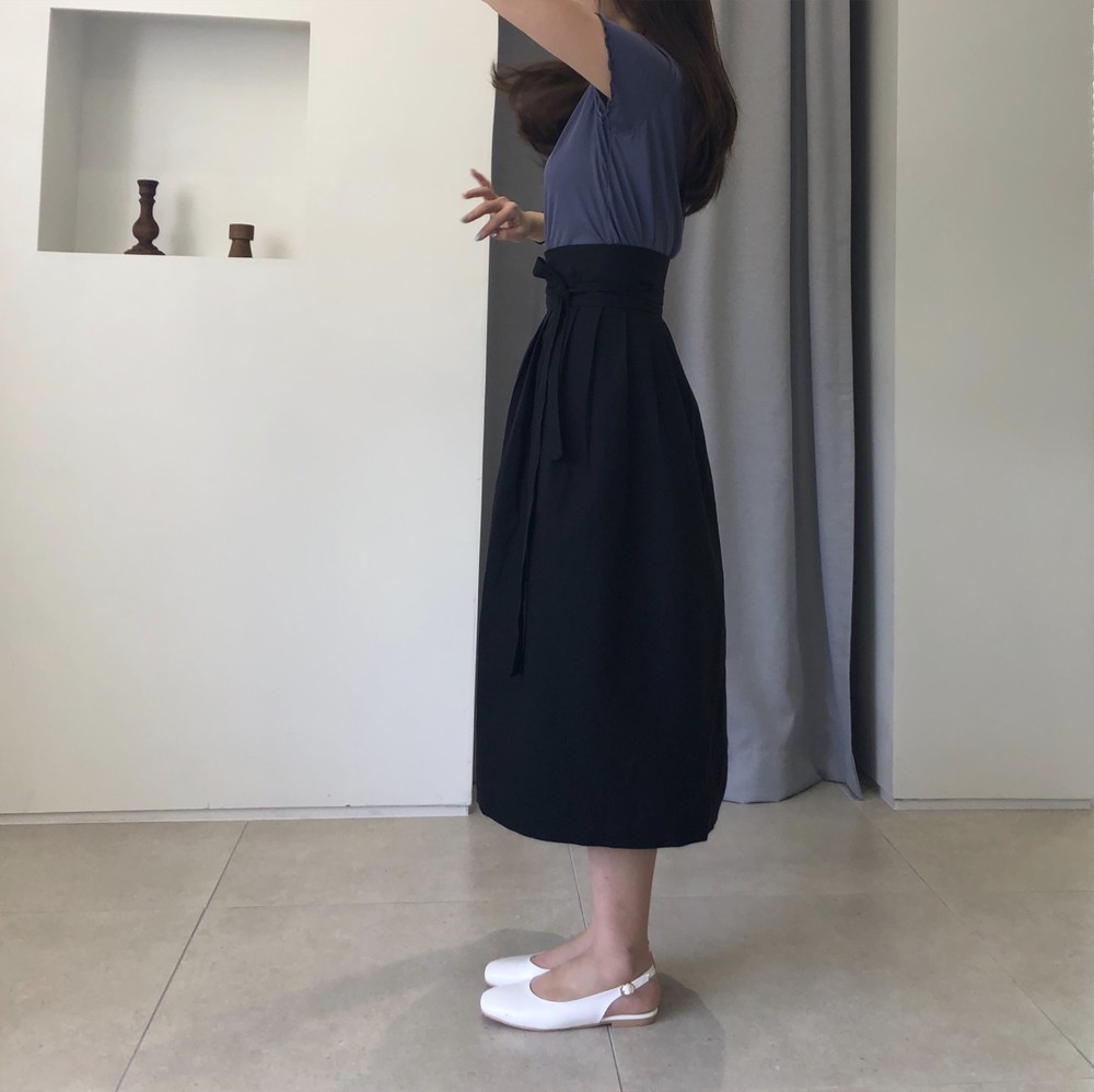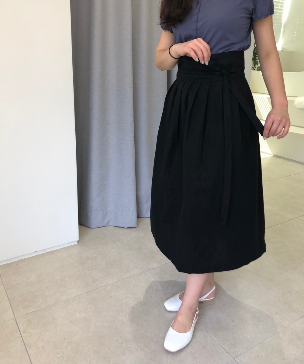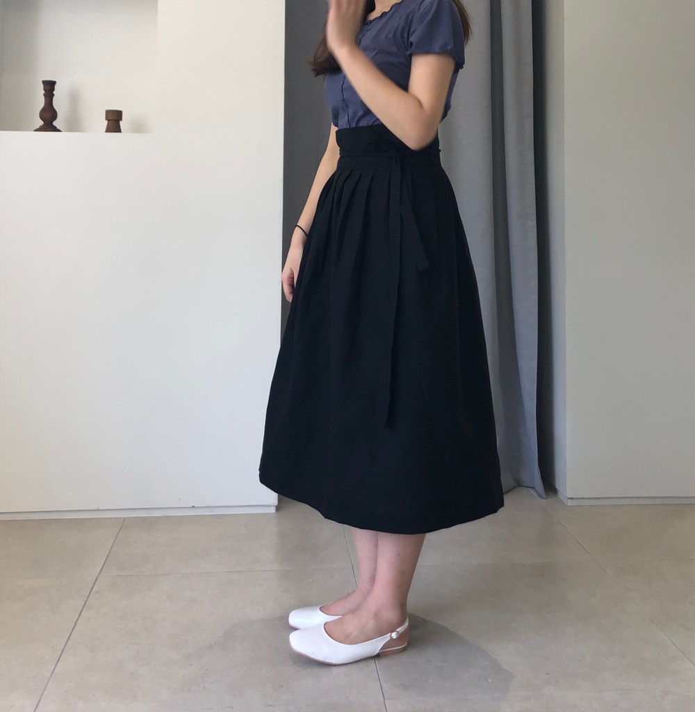 치마 허리에 끈을 넣을수 있는 구멍이 두개가 있습니다.
