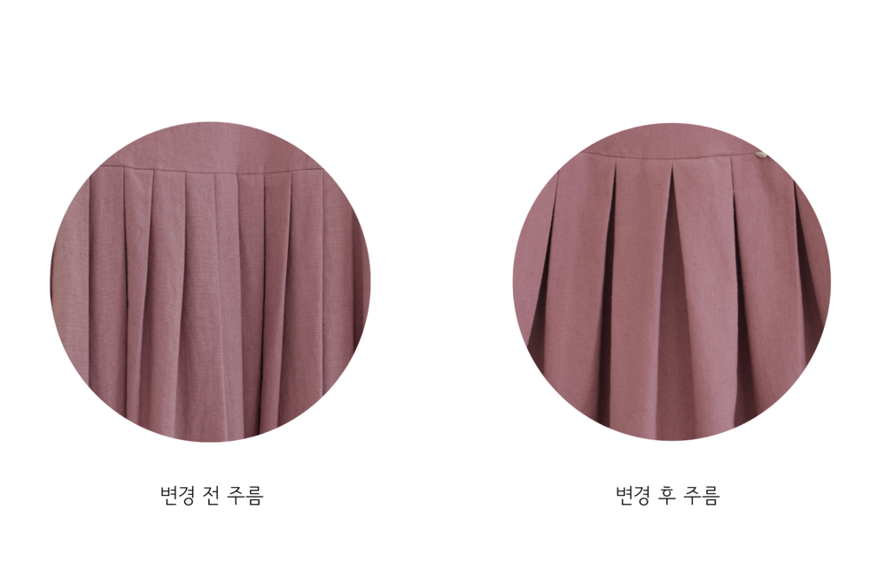 기존 주름과 달리 맞주름을 주어 경쾌한 무드를 더하고,